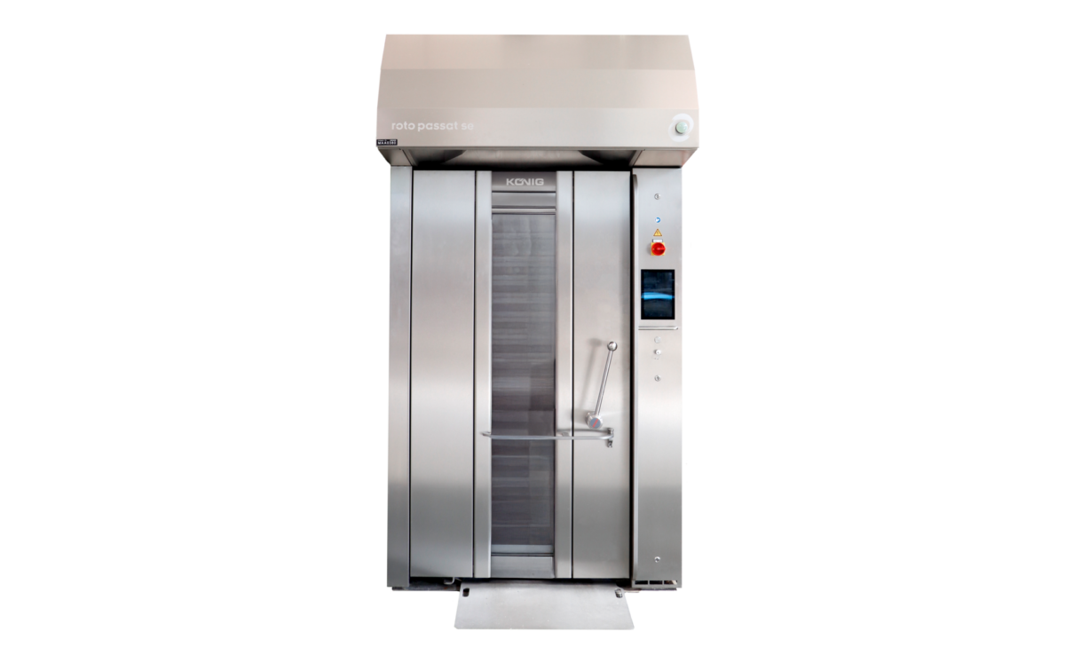 El horno de bandejas Roto Passat SE de König ofrece máxima capacidad en mínimo espacio. La versión «Save Energy» ahorra hasta un 20% de energía y consigue los mejores y más uniformes resultados de horneado.